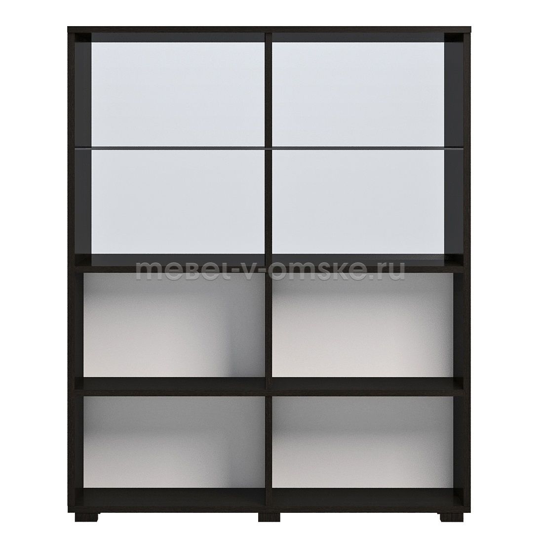 - Функциональность - шкаф оснащен 4 отделеньями за распашными дверями, фасады верхних шкафов из стекла, а задняя стенка зеркальная, так же верхние отделения имеют стеклянные полки. Отделения в основании шкафа имеют фасады из ЛДСП и МДФ, полки этих отделений из ЛДСП.