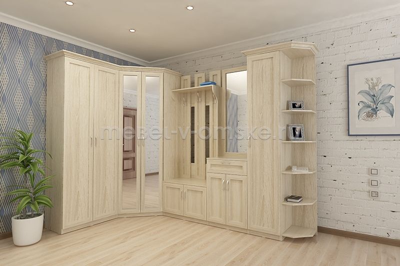 Угловой стеллаж «Фиери» из модульной коллекции мебели для прихожей выполненный в классическом традиционном дизайне выглядит аккуратно и элегантно.