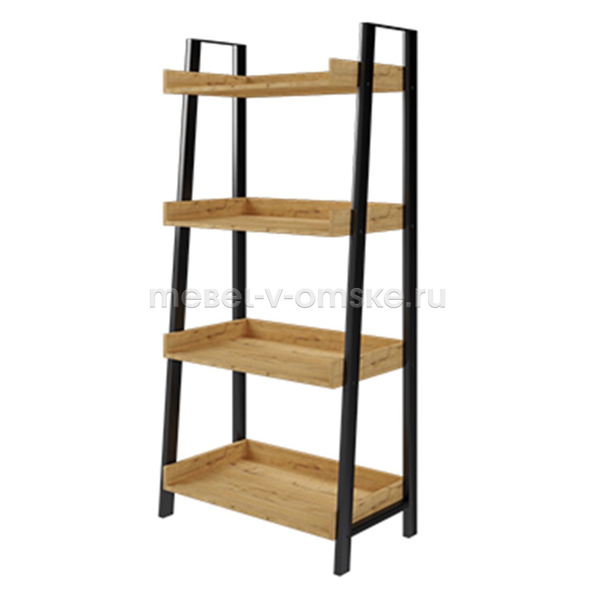 - Цветовое исполнение. Стеллаж вывполнен в расцветке полки ЛДСП Дуб Бунратти / основание металл Черный муар.