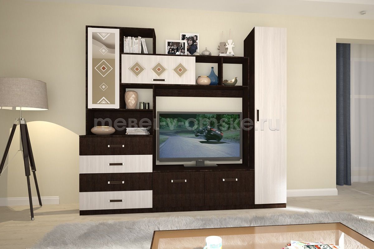- Модульность. Купить стенку в гостиную можно как отдельный предмет мебели или же дополнить другими элементами этой серии, позволяющими обустроить помещение любого размера.