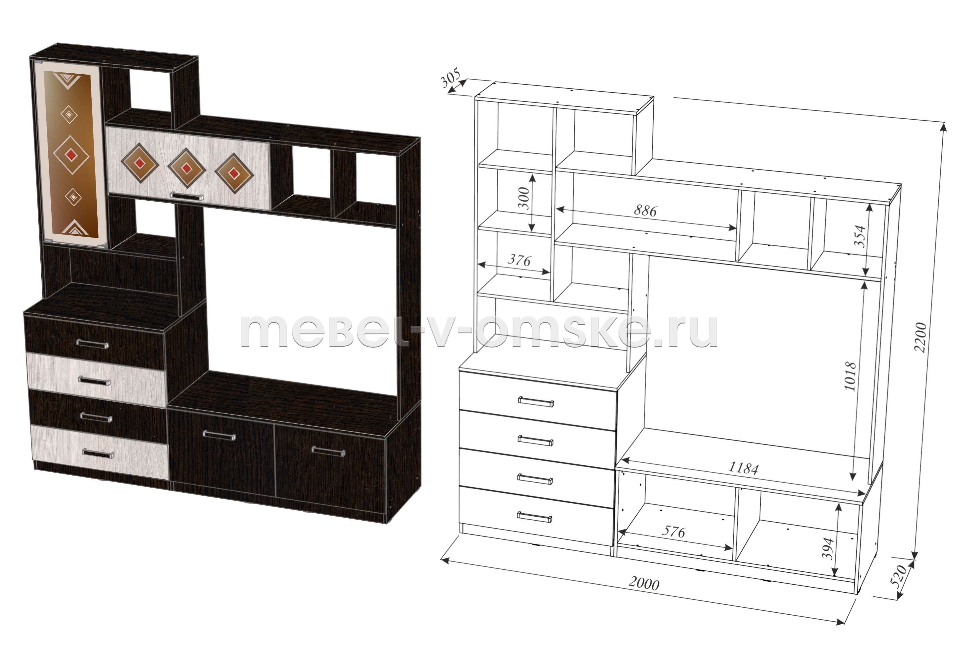 Гарантия12 месяцевШирина2000 ммВысота2205 ммГлубина520 ммШирина ТВ ниши1184 ммМатериал фасадаЛДСП + стеклоМатериал корпусаЛДСПДекор фасадовстекло с фотопечатьюВыдвижные ящикиестьТип направляющих в ящикахшариковыеШтанганетПроизводствоОмскВес134 кгКоличество упаковок5 шт.Поставкав разобранном виде -