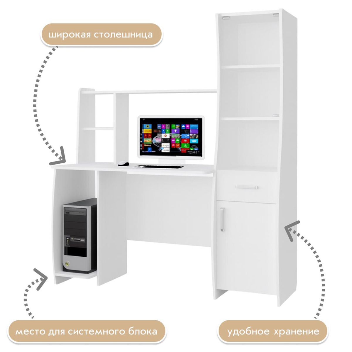 - Продуманная конструкция стола – предусмотрено место под установку системного блока, надстройка, которую можно использовать под принтер или другую технику.