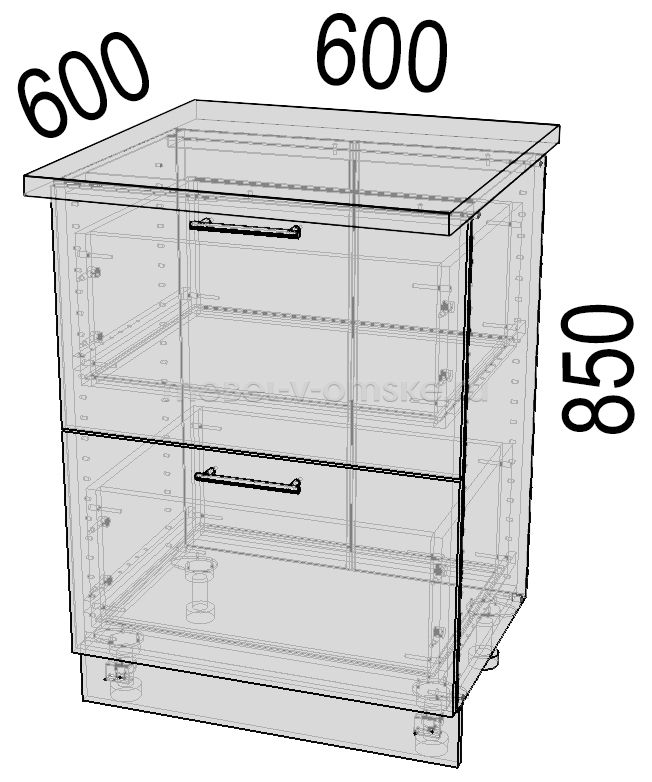 Габариты. Столешницы не входят в стоимость модуля и комплектутся отдельно. Как именно Вам нужно распилить столешницу - напишите в комментарии при заказе кухни, и наши продавцы свяжутся с вами. На ваш выбор столешницы толщиной 26 мм. и 38 мм.