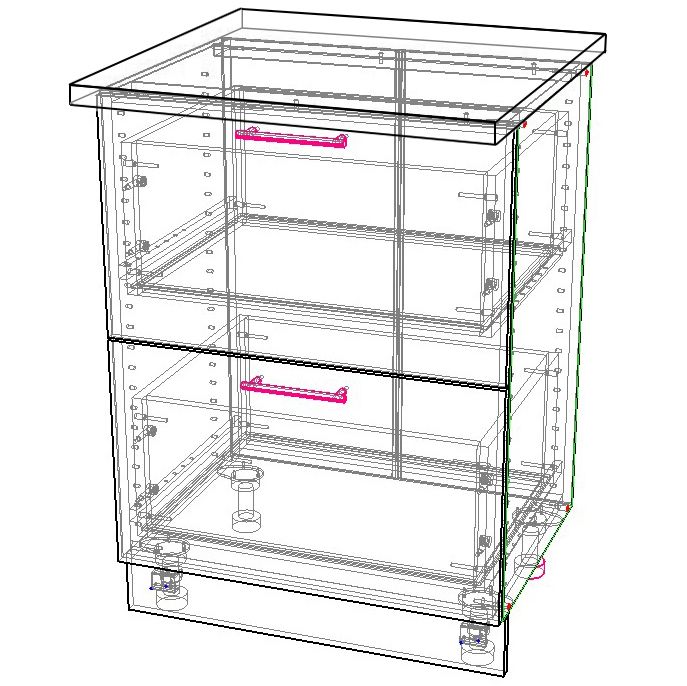 - Выдвижные ящики выдерживают более высокие нагрузки, за счет шариковых направляющих и дополнительного пропила по всему периметру ящика для более надежной фиксации дна.