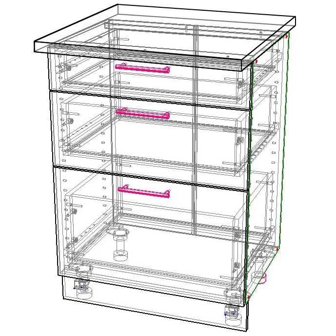 - Выдвижные ящики выдерживают более высокие нагрузки, за счет шариковых направляющих и дополнительного пропила по всему периметру ящика для более надежной фиксации дна.