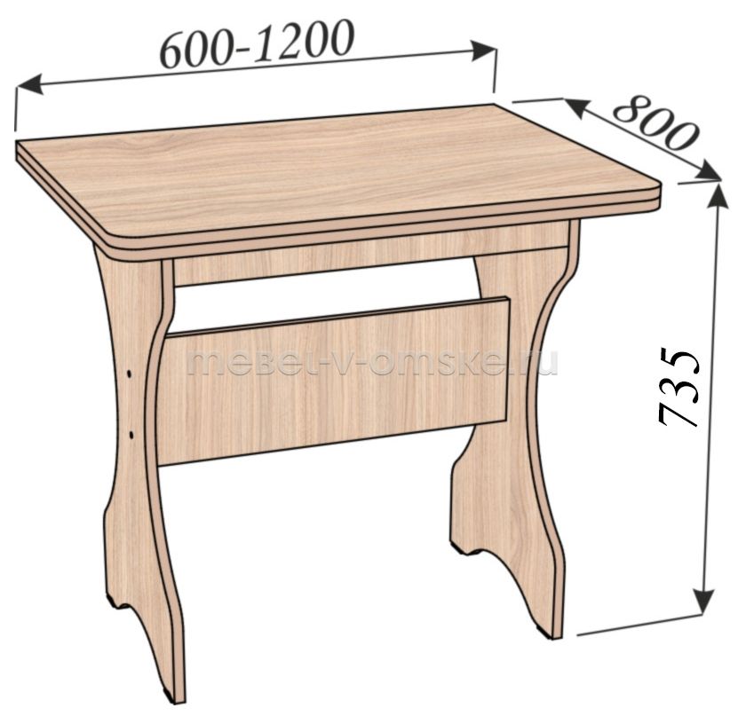 Недорогой и практичный стол обеденный раскладной омского производства в собранном виде не займёт много места в Вашей кухне или столовой, но при необходимости он легко превратится в более просторную обеденную поверхность, за которой может собраться большая семья.