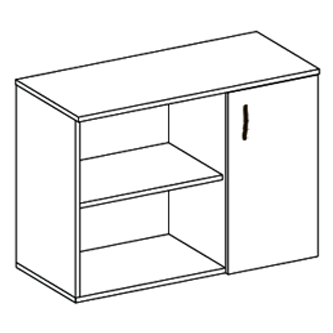 - Продуманная система хранения – тумба оснащена одним отделением с глухой дверкой и двумя просторными нишами, вместит значительный объём офисных документов, отчётов и канцелярии.