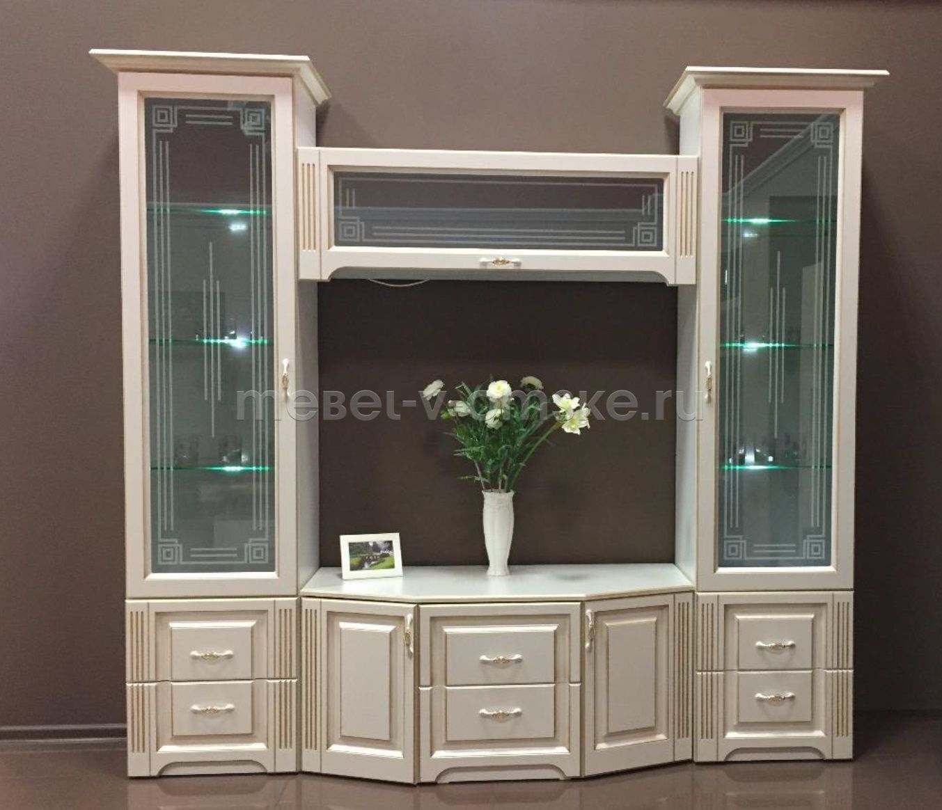 - Модульность – купить тумбу под телевизор можно как самостоятельный предмет мебели или дополнить другими элементами гостиной «Версаль», позволяющими оформить интерьер главной комнаты дома с поражающим великолепием и комфортом.