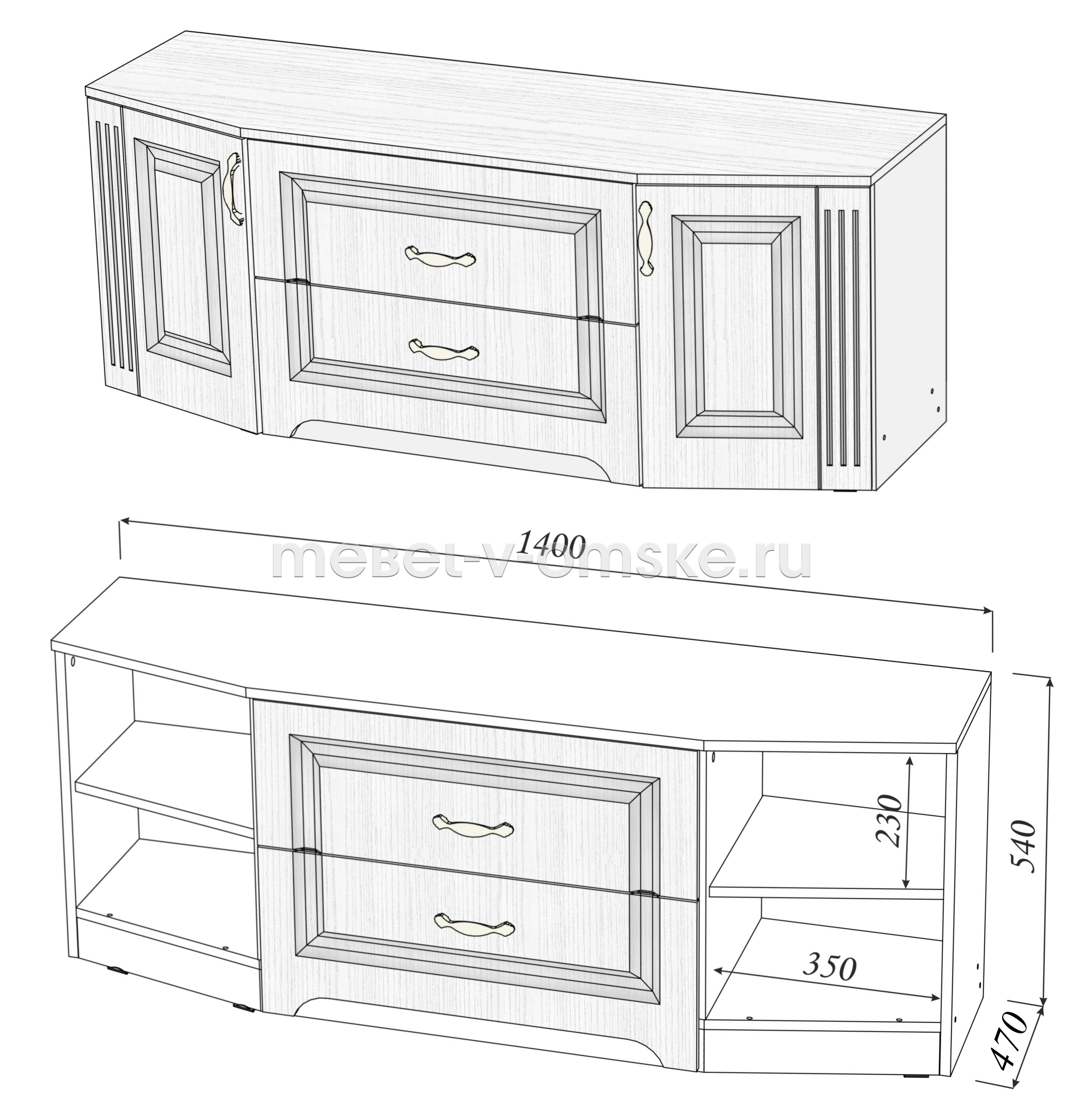 Тумба ТВ «Версаль» из модульной программы мебели для гостиной соединила в себе аристократическое благородство дизайна и продуманную конструкцию.