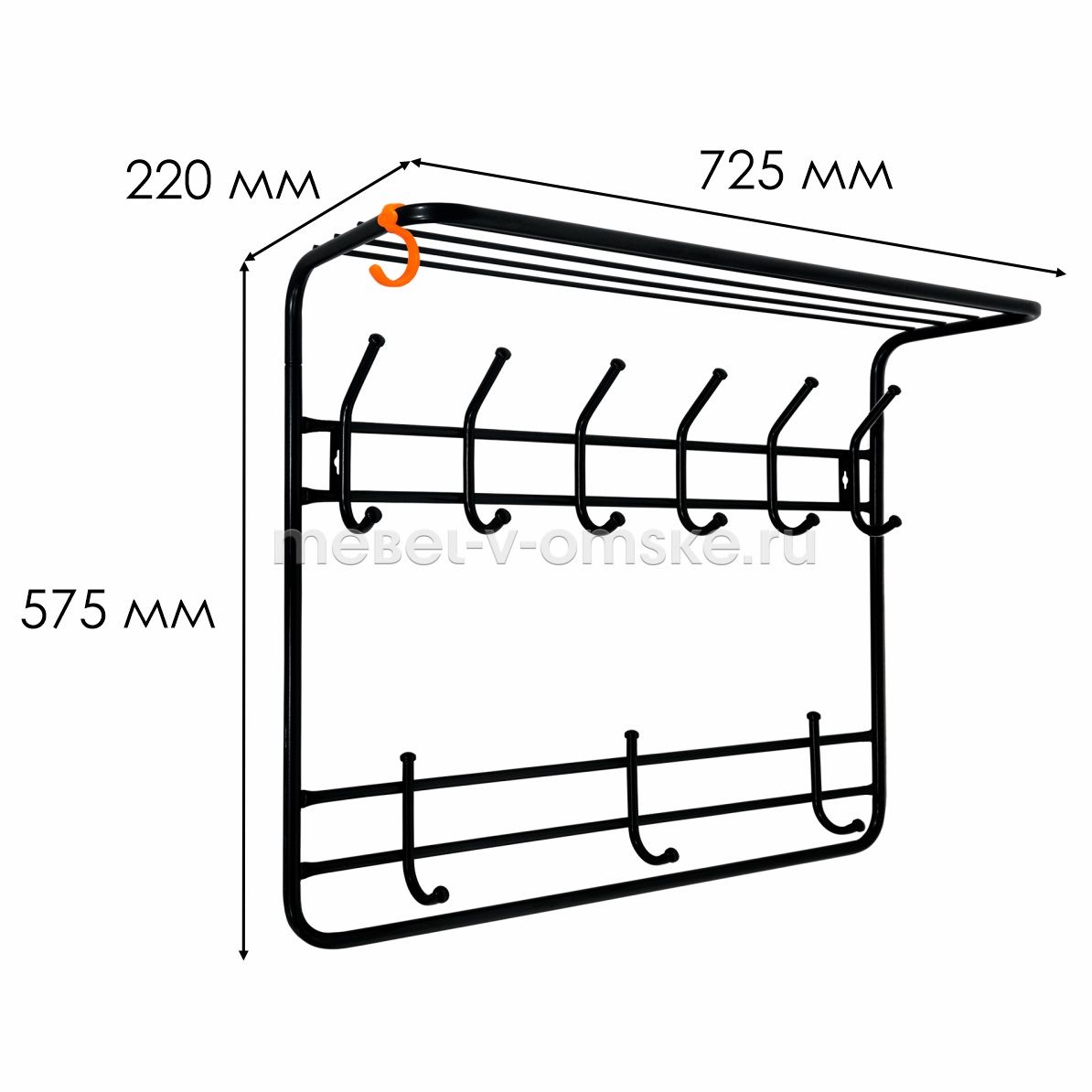 Большая, настенная вешалка с полкой "ВСП 9"- практичная вещь в обустройстве вашего дома, офиса или другого общественного места.